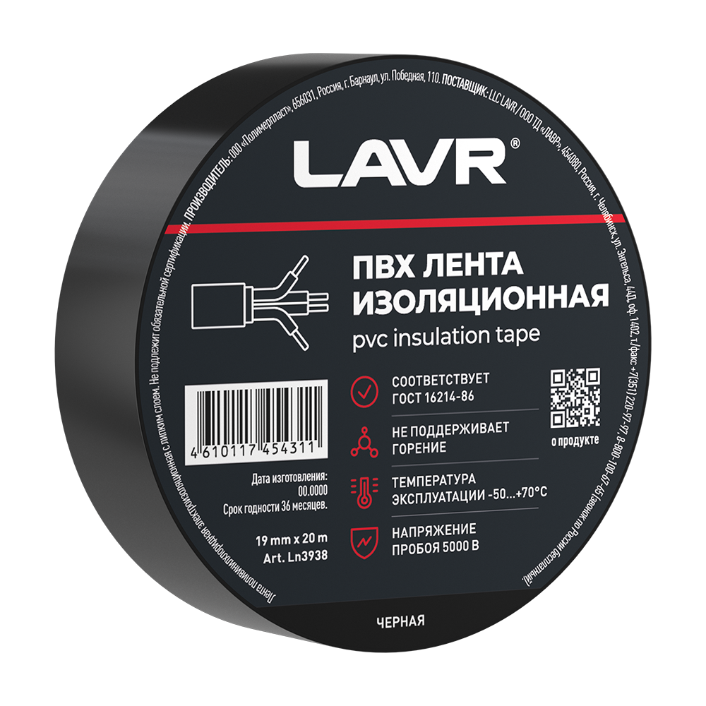 Изолента LAVR ПВХ 19мм*20м Черная