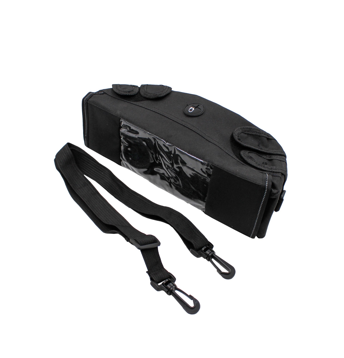 Служит для размещения разной полезной мелочи в виде не большого набора интрумента и пр. Имеется возможность крепления на руле мотоцикла и ремешок для переноски в руках или на плече. Цвет черный.